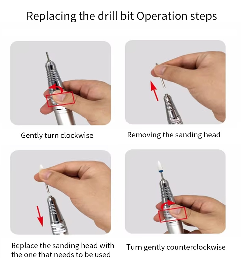 Seda 30 000 p/min elektrilise küünepuuri asendustrelli töömeetodit, st ühendage ja tõmmake välja, lihtne ja mugav, saab pärast lõpetamist kasutada.