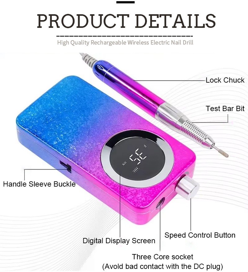 Kaasaskantav elektriline küünepuurikomplekt võimsa mootoriga 65w 35000rpm