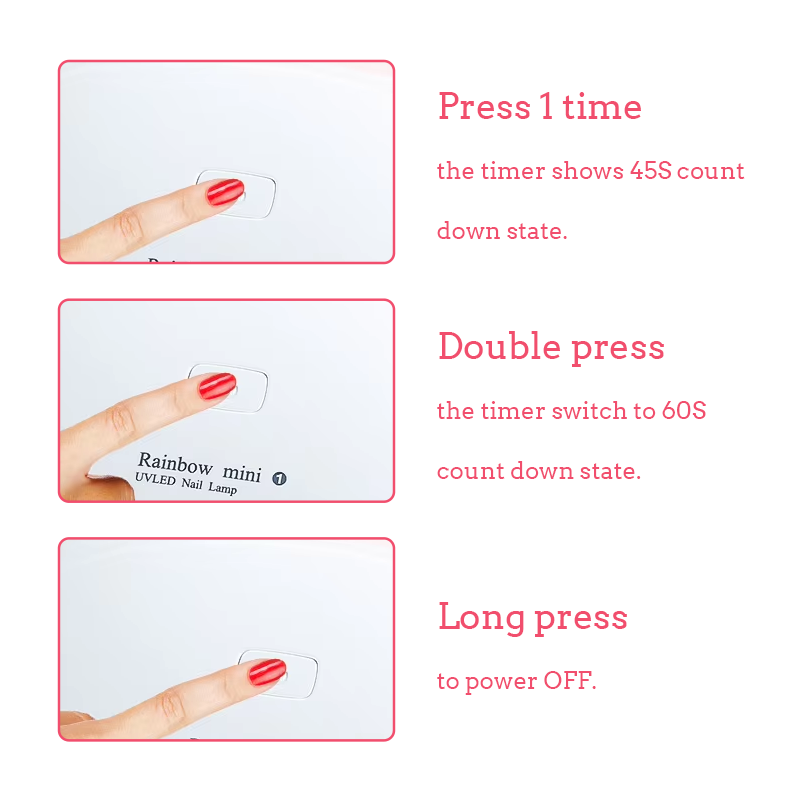 • Suure võimsusega LED-pirnid kiireks 10-sekundiliseks geelkõvastumiseks