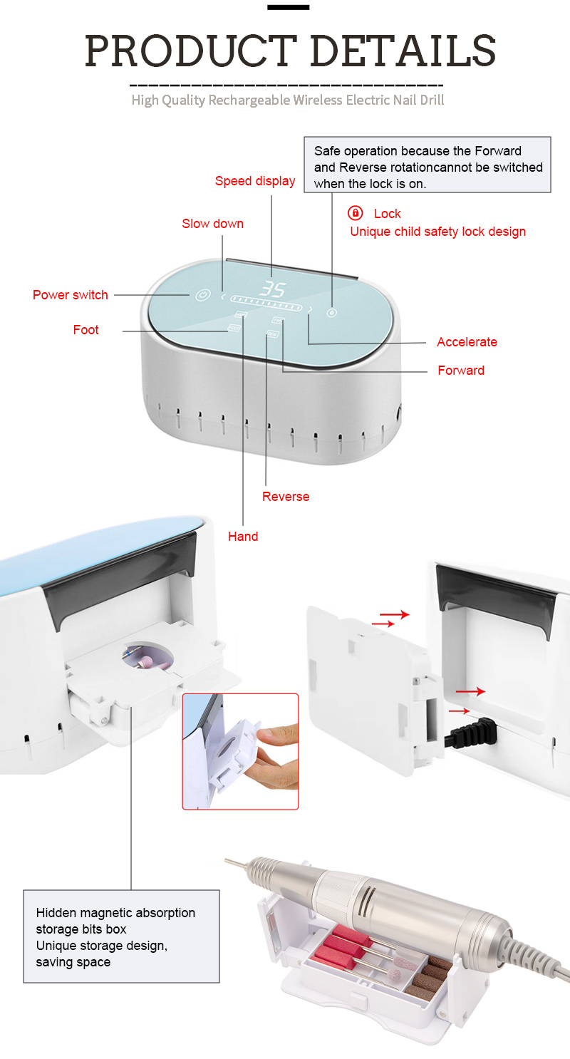 217 kiire 35000 p / min elektrilise küünefaili toote omadused ja rakendused poleerimiseks