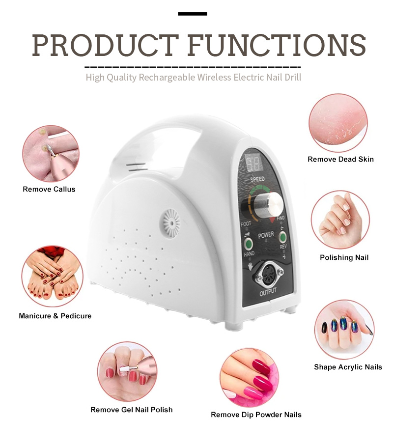 Tootefunktsioon ja 702 suure kiirusega 35000 p / min küünelakkide eemaldamise elektrilise küünefaili rakendamine