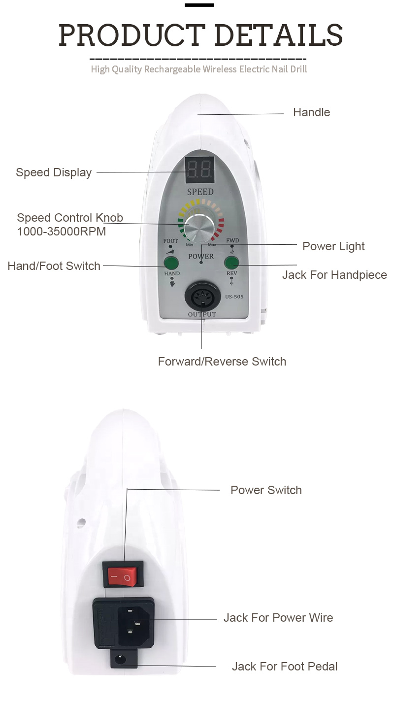 한국어Shenzhen Ruina Optoelectronic Co., Ltd. Juhtiv Hiina 702 Kiire 35000 RPM küünelakkide eemaldaja elektrilise küünefaili tootja, tarnija ja eksportija. Täiuslike toodete kvaliteedi järgimine, nii et meie 702 kiire 35000 p / min küünelakkide eemaldamise elektrilise küünefaili on rahuldanud paljud kliendid. Äärmuslik disain, kvaliteetsed toorained, suure jõudlusega ja konkurentsivõimeline hind on see, mida iga klient soovib, ja see on ka see, mida me teile pakkuda saame. Muidugi on oluline ka meie täiuslik müügijärgne teenus.