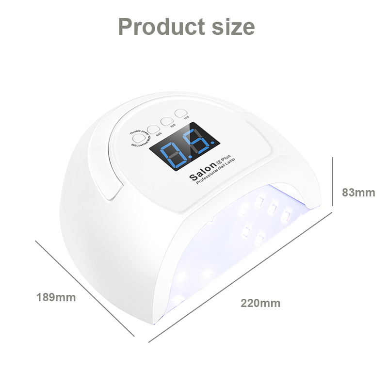 Toode tagab liimi ühtlase kuivamise ilma kokkutõmbumiseta. Selle kaks valgusallikat soojendavad õrnalt, et vältida käte värvimuutust ja silmade väsitamist, mis sobib nii kätele kui jalgadele, pakkudes märkimisväärselt kiireid kuivatustulemusi.