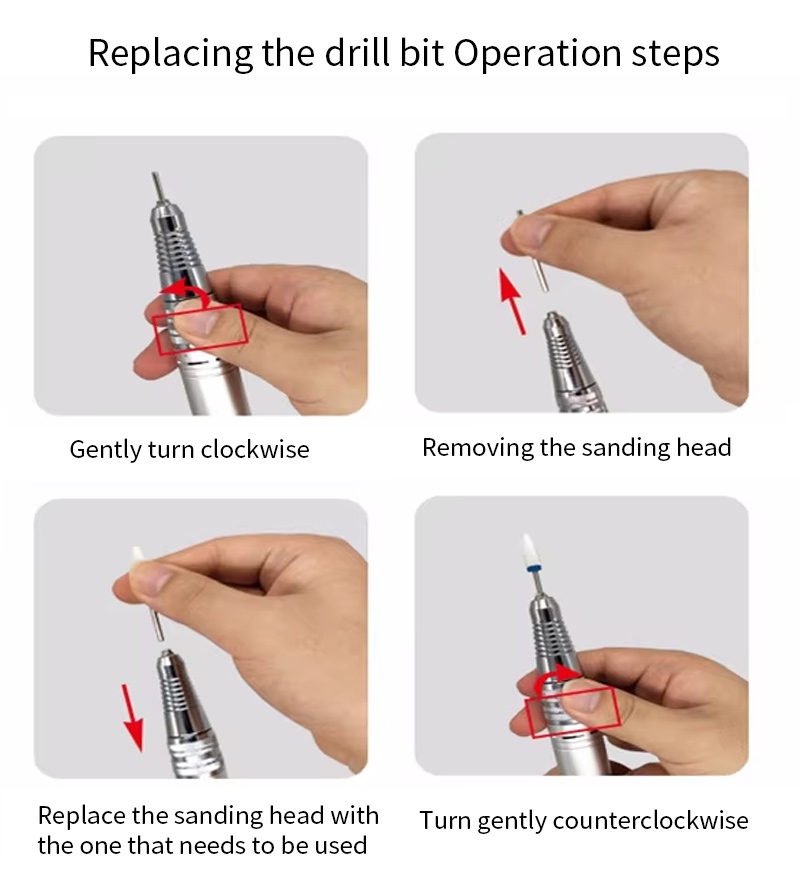 Seda käeshoitavat küünepuuri ja poleerimismasina asendustrelli töömeetodit, st ühendage ja tõmmake välja, lihtne ja mugav, asendamist saab kasutada pärast lõpetamist.