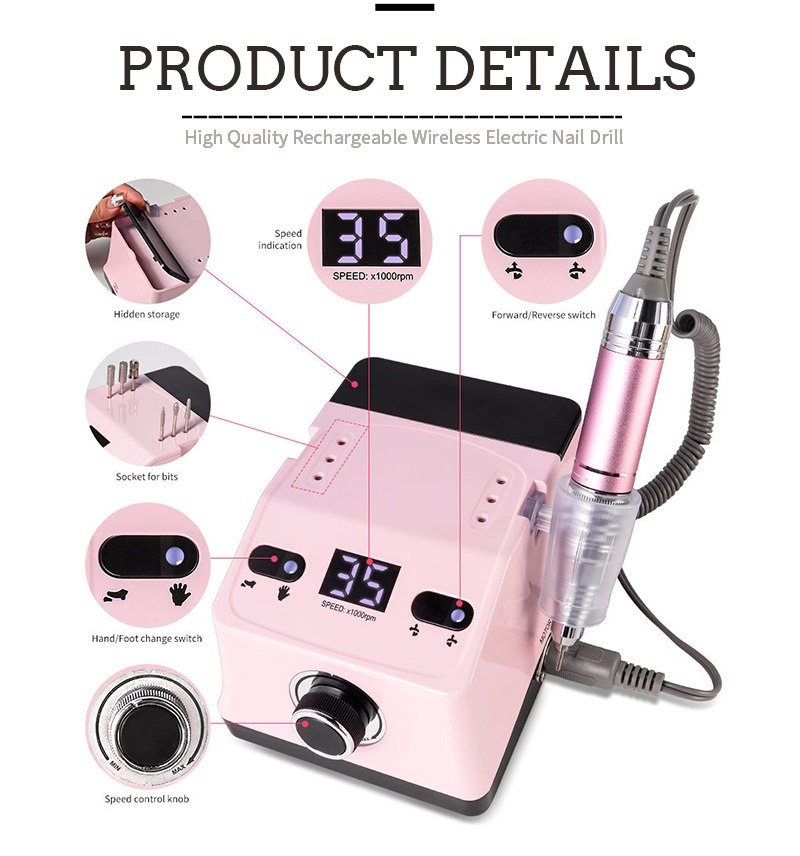 Kaasaskantav elektriline küünepuurikomplekt võimsa mootoriga 65w 35000rpm