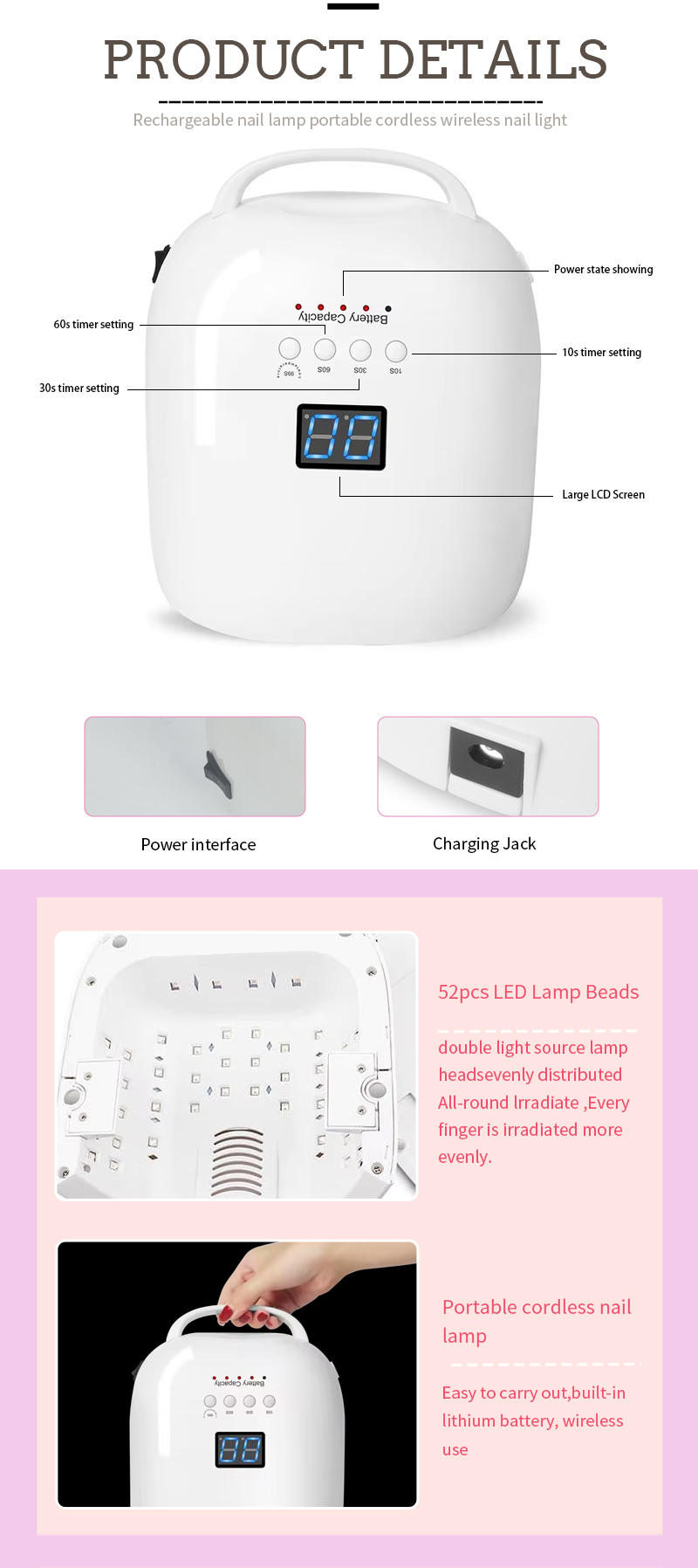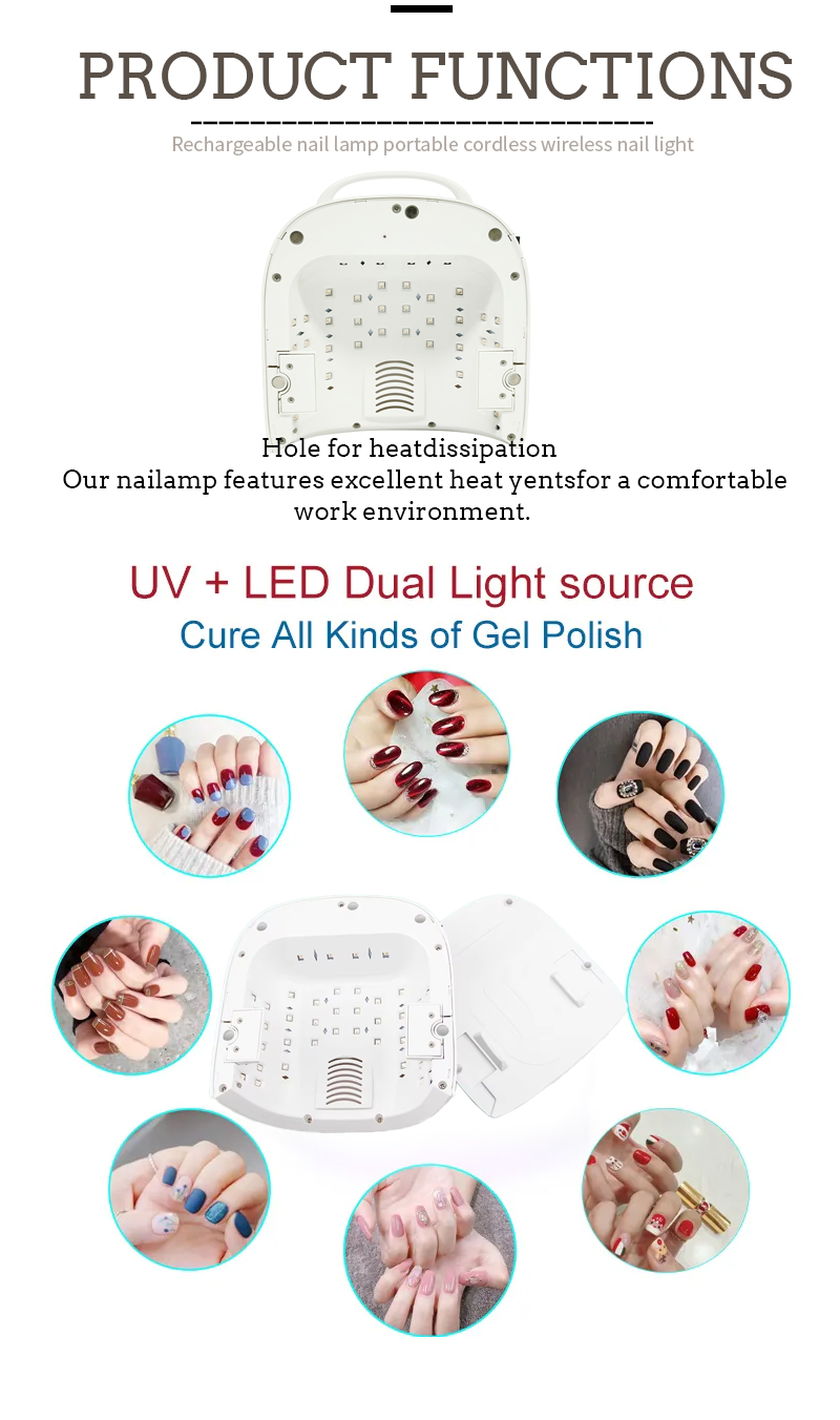 Toode tagab isegi liimi kuivamise ilma kokkutõmbumiseta. Selle kahekordsed valgusallikad pakuvad õrna kuumutamist, et vältida käe värvimuutust ja silmade pinget, mis sobib nii käte kui ka jalgade jaoks, pakkudes märkimisväärselt kiireid kuivamise tulemusi.