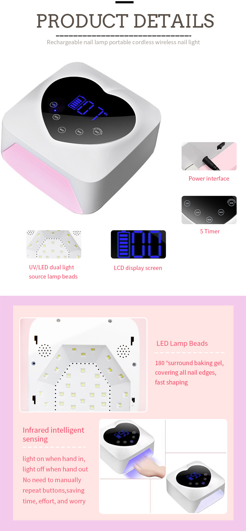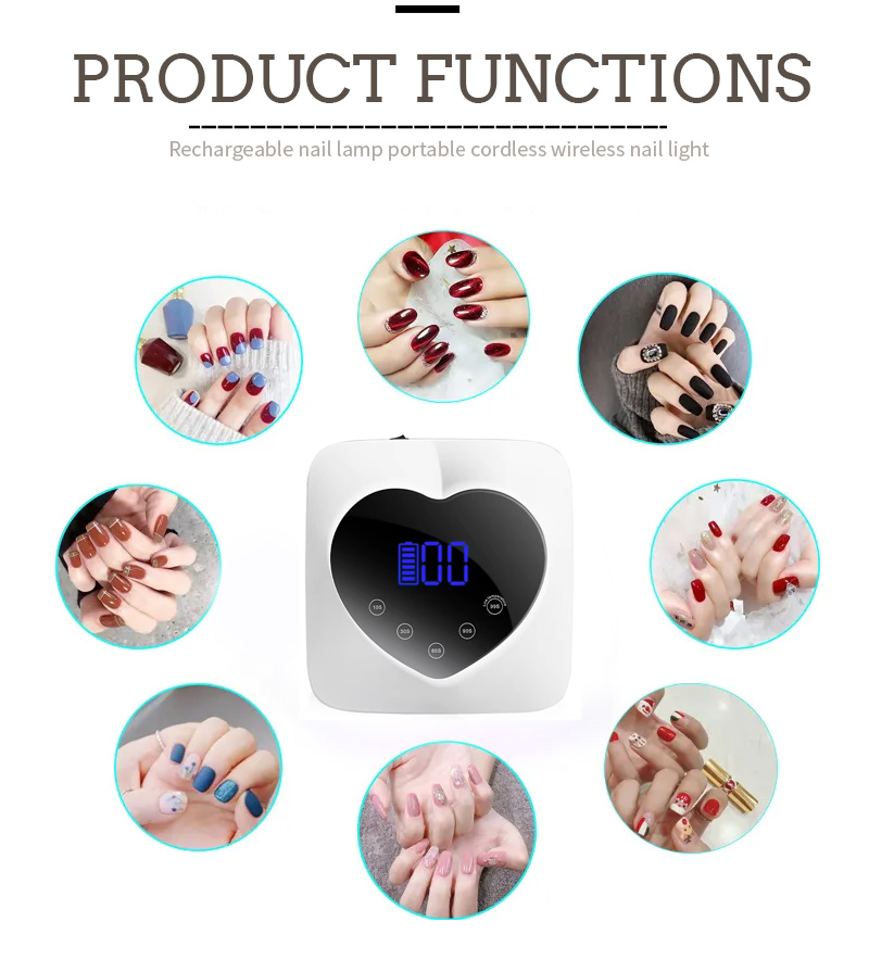 Toode tagab isegi liimi kuivamise ilma kokkutõmbumiseta. Selle kahekordsed valgusallikad pakuvad õrna kuumutamist, et vältida käe värvimuutust ja silmade pinget, mis sobib nii käte kui ka jalgade jaoks, pakkudes märkimisväärselt kiireid kuivamise tulemusi.