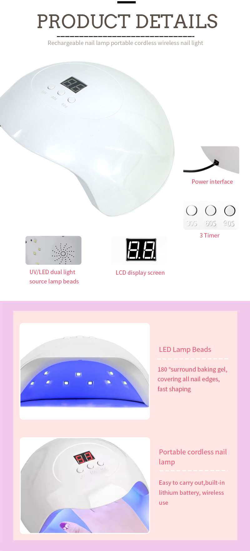 Toode tagab isegi liimi kuivamise ilma kokkutõmbumiseta. Selle kahekordsed valgusallikad pakuvad õrna kuumutamist, et vältida käe värvimuutust ja silmade pinget, mis sobib nii käte kui ka jalgade jaoks, pakkudes märkimisväärselt kiireid kuivamise tulemusi.