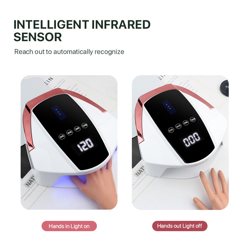 Toode tagab liimi ühtlase kuivamise ilma kokkutõmbumiseta. Selle kaks valgusallikat soojendavad õrnalt, et vältida käte värvimuutust ja silmade väsitamist, mis sobib nii kätele kui jalgadele, pakkudes märkimisväärselt kiireid kuivatustulemusi.