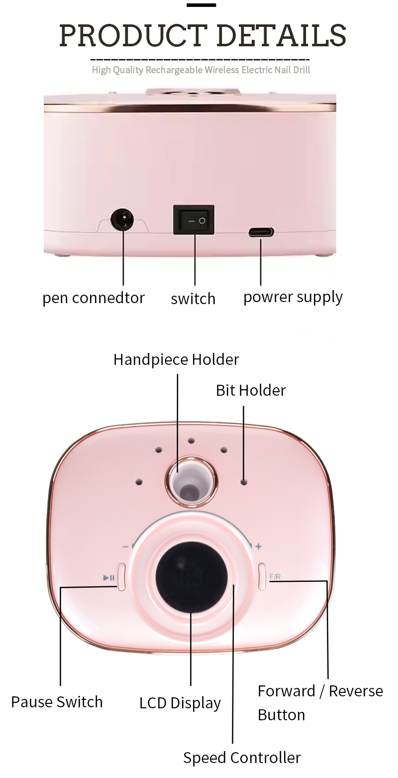 Taaslaetav küünepuurikomplekt võimsa käsiinstrumendiga 45w 35000rpm