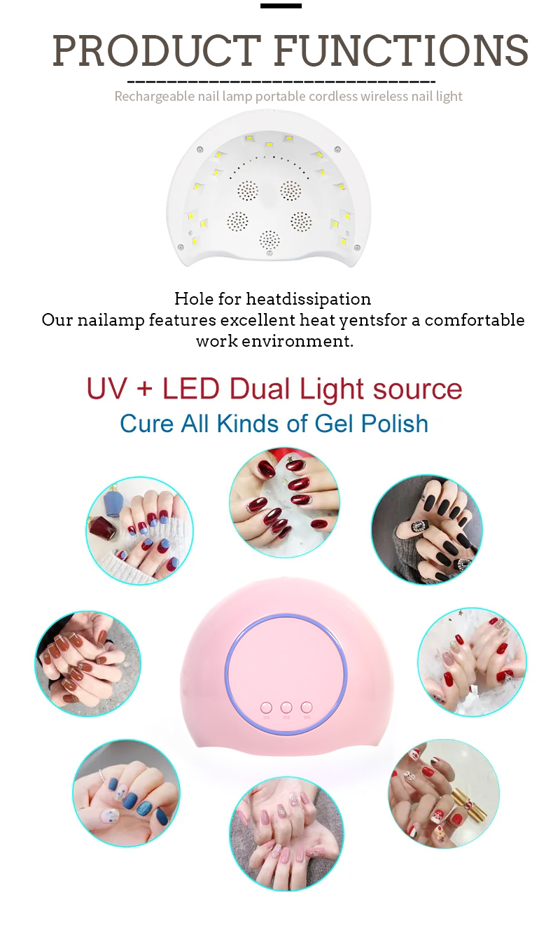 Toode tagab isegi liimi kuivamise ilma kokkutõmbumiseta. Selle kahekordsed valgusallikad pakuvad õrna kuumutamist, et vältida käe värvimuutust ja silmade pinget, mis sobib nii käte kui ka jalgade jaoks, pakkudes märkimisväärselt kiireid kuivamise tulemusi.