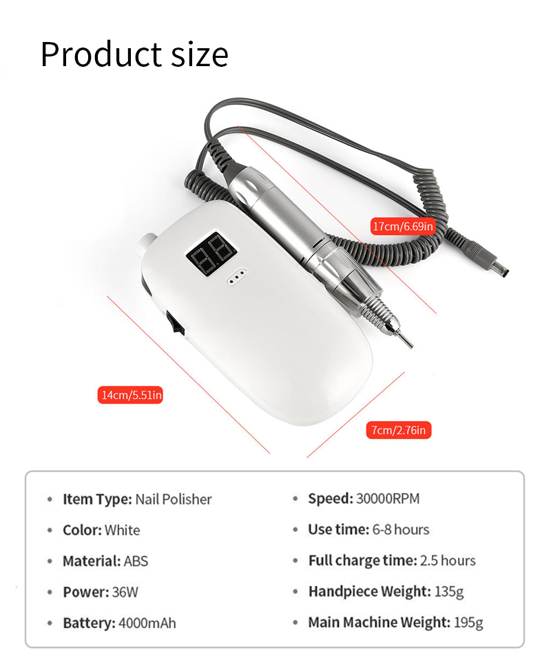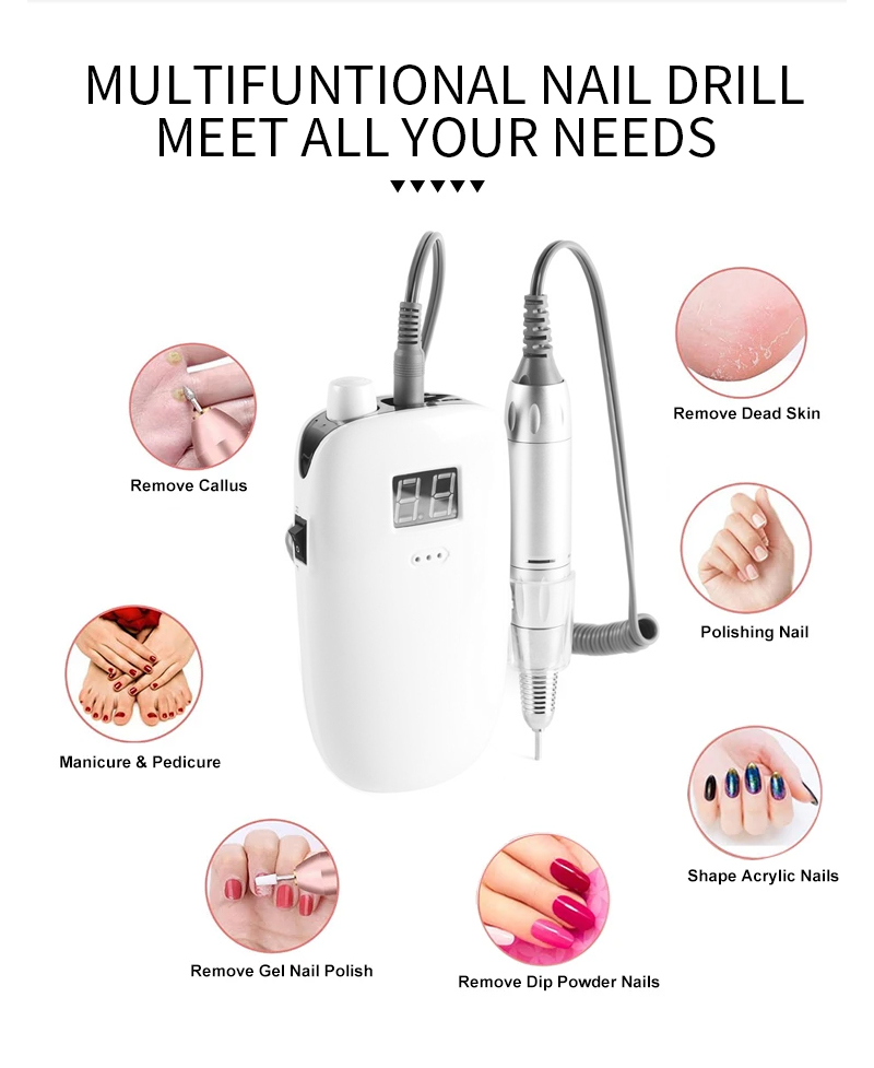 Kaasaskantav elektriline küünepuurikomplekt võimsa mootoriga 65w 35000rpm