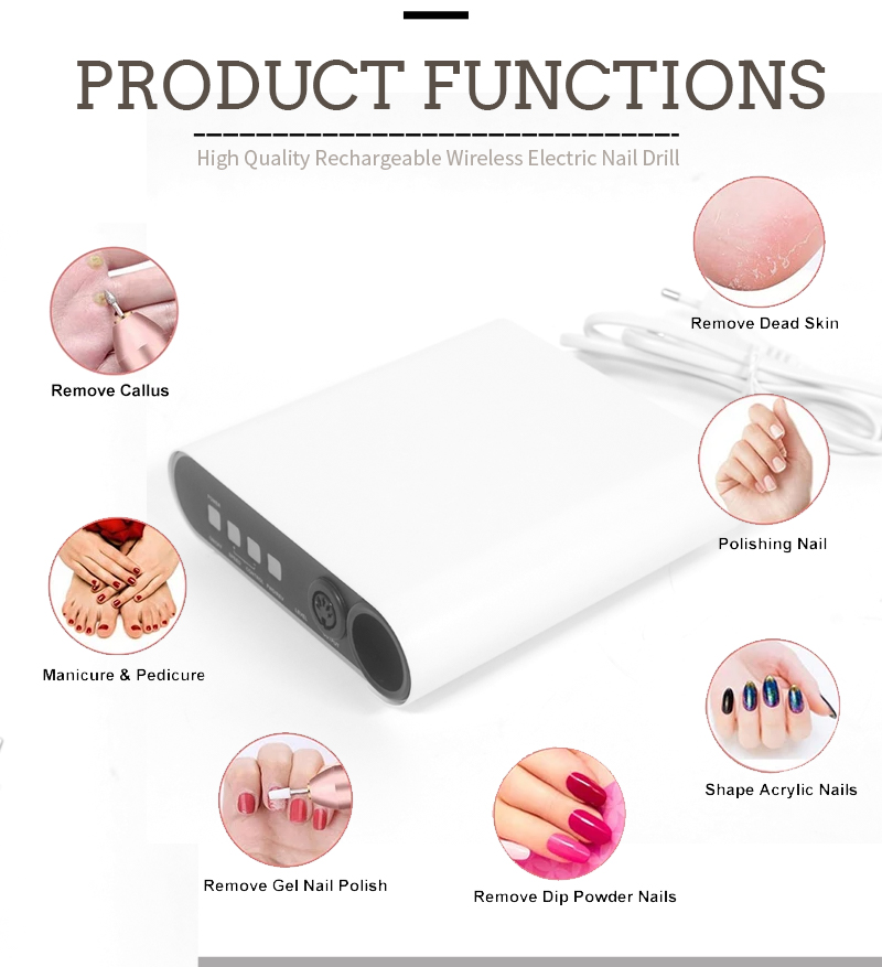 Kaasaskantav elektriline küünepuurikomplekt võimsa mootoriga 65w 35000rpm