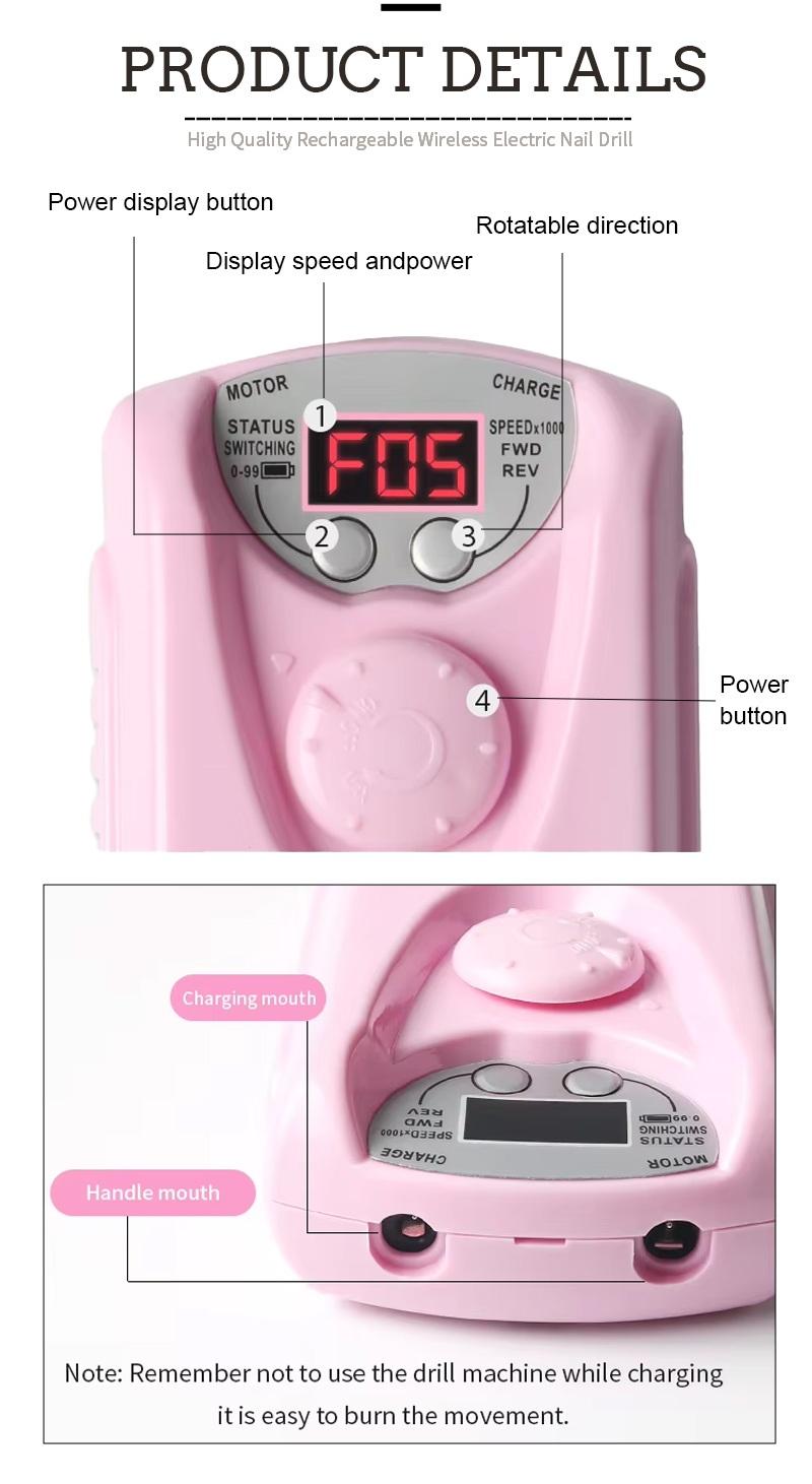 Kaasaskantav elektriline küünepuurikomplekt võimsa mootoriga 65w 35000rpm