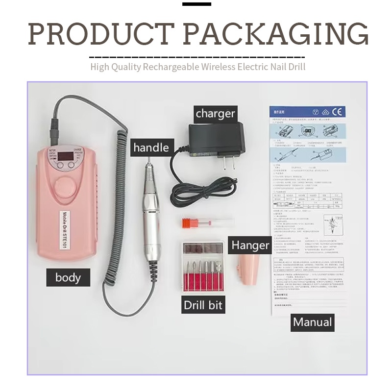 Selle professionaalse akutrelli elektrilise naeltrelli pakendi sisus on lihvimispliiatsi toode, USB laadimiskaabel, toote kasutusjuhend ning kerge ja kaasaskantav karp.