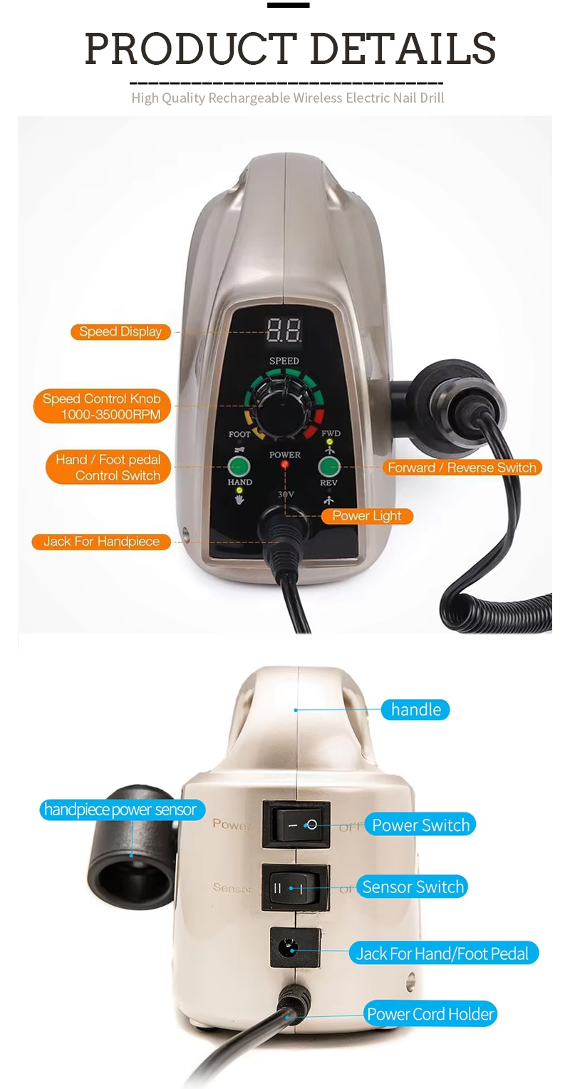 Taaslaetav küünepuurikomplekt võimsa käsiinstrumendiga 45w 35000rpm