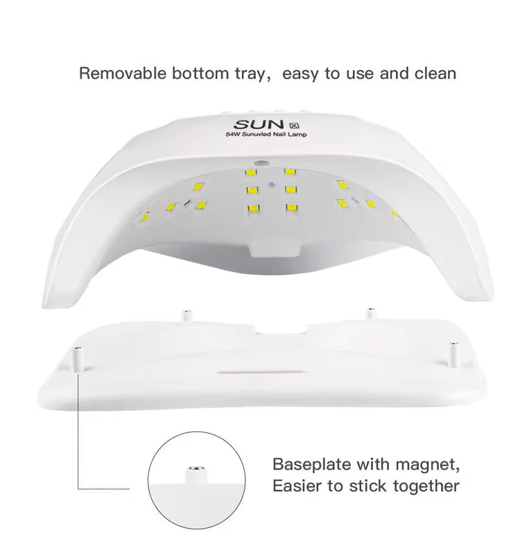 Kiiresti kuivav geelküünelamp tagab liimi ühtlase kuivamise ilma kokkutõmbumiseta. Selle kaks valgusallikat soojendavad õrnalt, et vältida käte värvimuutust ja silmade väsitamist, mis sobib nii kätele kui jalgadele, pakkudes märkimisväärselt kiireid kuivatustulemusi.