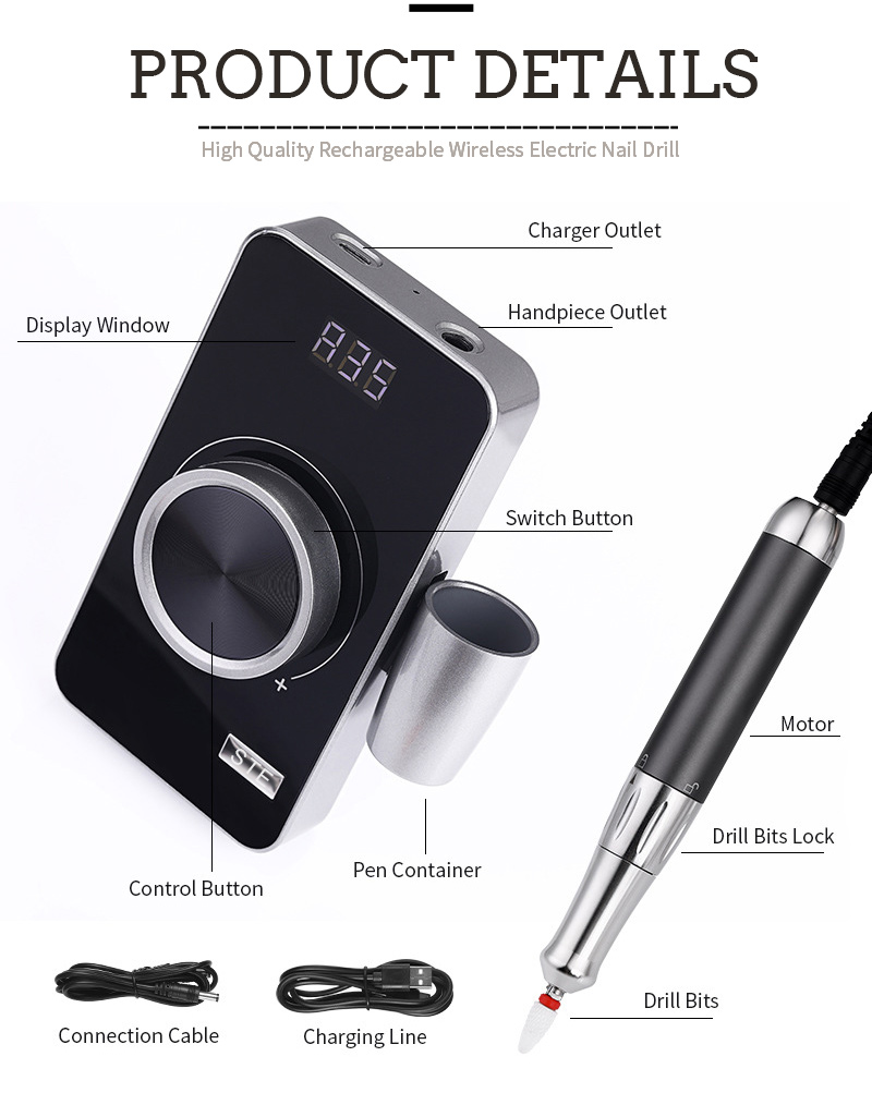 Taaslaetav küünepuurikomplekt võimsa käsiinstrumendiga 45w 35000rpm