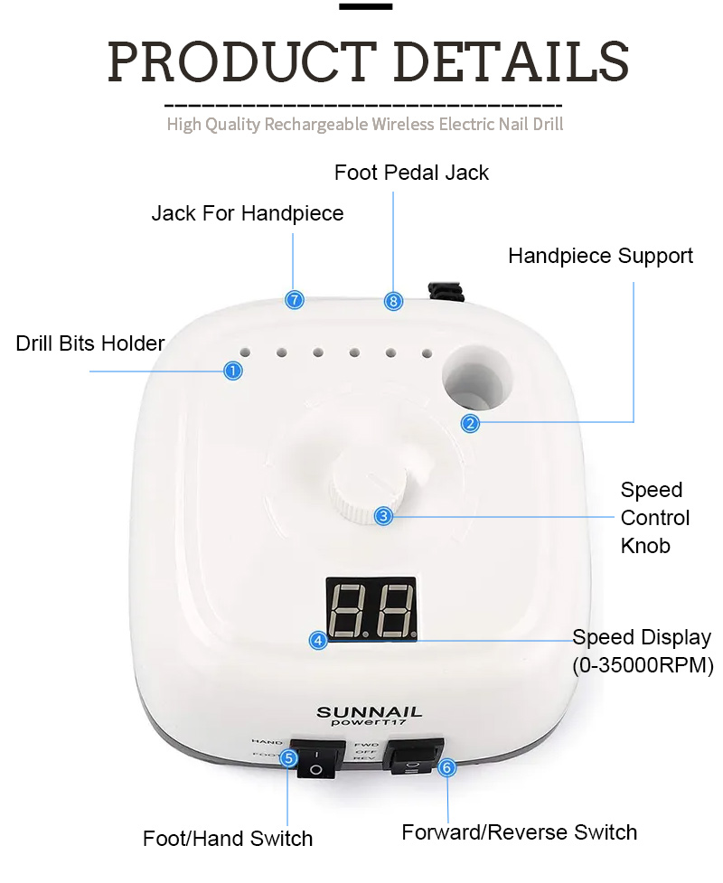 T17 suure kiirusega 35000 p / min küünelakkide eemaldamise elektrilise küünefaili tootefunktsioon ja rakendamine