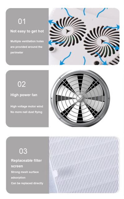Kolmekordse kombinatsiooniga käeshoitav küünelamp koos padjaga sisaldab infrapuna-nutitundlikku tehnoloogiat, mis süttib automaatselt, kui käed lähenevad, ja lülitub välja, kui käed eemalduvad – kõrvaldades nupu korduva vajutamise vaeva ning säästab aega ja vaeva. Suure võimsusega küpsetusliim ei nõua pikka ootamist, säästes nii aega kui ka vaeva.