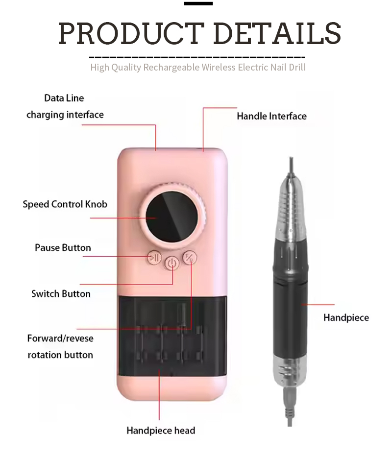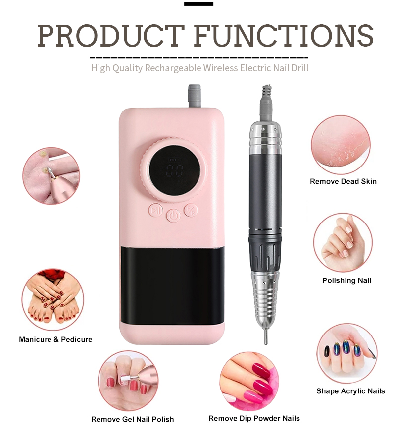 Kaasaskantav elektriline küünepuurikomplekt võimsa mootoriga 65w 35000rpm