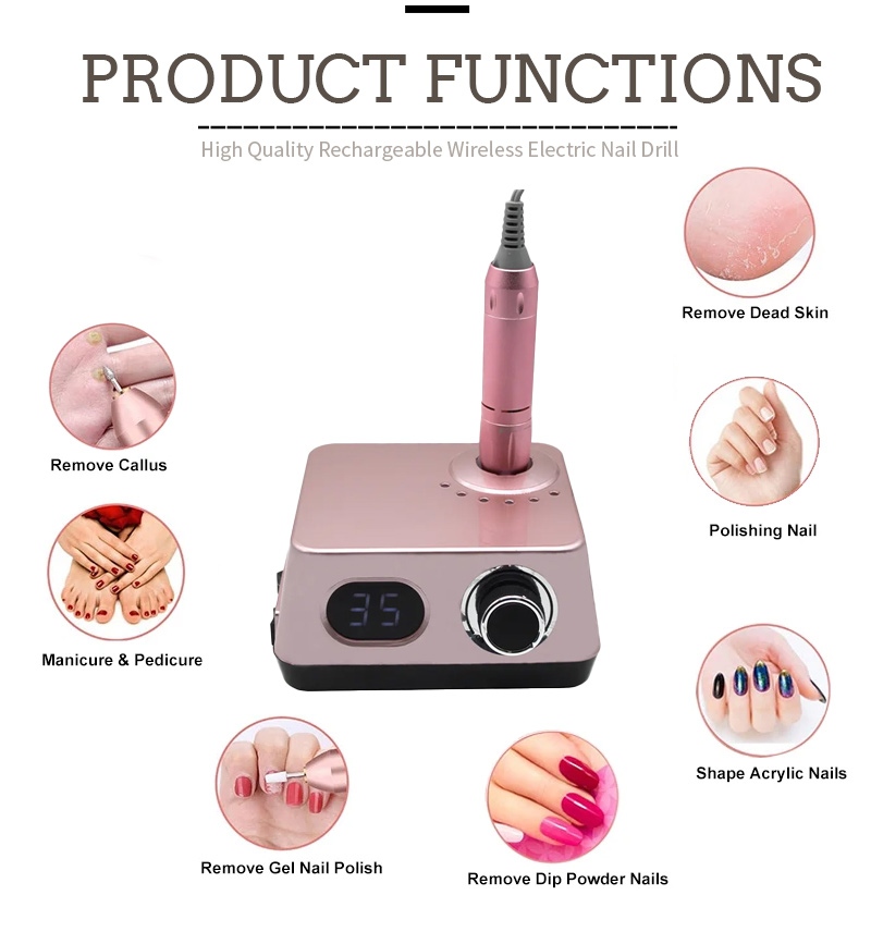 Kaasaskantav elektriline küünepuurikomplekt võimsa mootoriga 65w 35000rpm